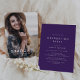 Esta moda morada de graduación de foto es perfecta para un fiesta moderno al aire libre. El diseño es sencillo y presenta una tipografía clásica de ciruela oscura y blanca de estilo rústico boho. Personalizable de cualquier color. Combine su invitación de gradación y la invitación de fiesta con esta tarjeta delantera y trasera.