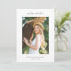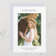 Esta moderna invitación a una fiesta de graduación de fotos muestra un sencillo texto negro y un frente blanco, con una suave espalda gris azul de la tarjeta. Este diseño moderno también incluye el nombre del graduado en un guión de bonito. Esta invitación de fiesta de grado es una manera perfecta de celebrar a tu graduado de moda.
