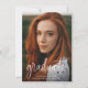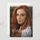 Budget Modern Calligraphy Photo Graduation Party Invitation incluye una gran foto de sangre completa en la parte delantera, junto con dos fotos y detalles de tu fiesta de graduación en la parte posterior.