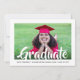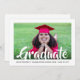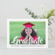 Invite a amigos y familiares a su fiesta de graduación y comparta una foto favorita con invitaciones modernas sencillas. Las fotos y el texto son fáciles de personalizar. (IMAGEN PLACEMENT TIP: Una forma de centrar una foto exactamente como quieres es recortarla antes de subirla al sitio web de Zazzle.) Esta plantilla se configura como una invitación a la casa abierta para la graduación, pero se puede cambiar fácilmente a cualquier tipo de evento. El diseño presenta una elegante caligrafía de escritura a mano, un moderno nombre de graduado en tipografía minimalista, el año de clase y la escuela, y una foto de su elección, como una imagen de la ceremonia de graduación o imagen de la ceremonia de graduación. Esta elegante tarjeta de invitación de graduación es una manera elegante y moda de comenzar su celebración especial del día.