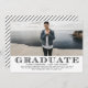 Celebra el graduado con esta invitación de fiesta de graduación de fotos inspirada en la cosecha. Esta invitación a graduarse de personalizable presenta tipografía de color negro con rayas diagonales.
