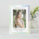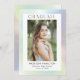 Invitar a los invitados a celebrar el graduado con invitaciones holográficas a la fiesta de graduación. La moderna fiesta de graduación invita a presentar la foto del graduado enmarcada en blanco con un fondo holográfico multicolor en tonos morados, azules, verdes y amarillos. "Graduado" se muestra en la parte superior con letras modernas y negras. Personalice la parte delantera de las invitaciones de la fiesta de graduación holográfica añadiendo el nombre del graduado, el nombre de la escuela y el año de graduación. La invitación se invierte para mostrar los detalles de su fiesta de graduación con un fondo holográfico coincidente. Las exclusivas invitaciones a la fiesta de graduación son perfectas tanto para fiestas de bachillerato como universitarios.