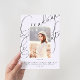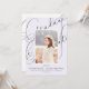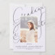 Sencilla y bonito invitación a una fiesta de graduación púrpura pastel con un guión elegante y una foto.