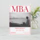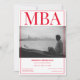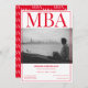 Invitación a una fiesta de graduación MBA con una plantilla de foto horizontal con un esquema de color blanco y rojo. Esta invitación también tiene un patrón de la palabra MBA en la parte trasera. Simplemente intercambia tu foto por la tuya propia, agrega tu información, agrega esta invitación a tu carrito y luego reúne a tus seres queridos para celebrar tu éxito.