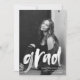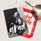 Invite a los invitados a celebrar el grado con nuestras invitaciones para la fiesta de graduación fotográfica. Las invitaciones modernas a la fiesta de graduación incluyen la foto del graduado con "grad" en un guión de pincel blanco. Personalice la parte delantera de la invitación a la fiesta de graduación con fotos agregando el nombre del graduado, el nombre de la escuela y el año de graduación. La invitación se invierte para mostrar los detalles de la fiesta de graduación con un fondo de pincel rojo y blanco.