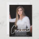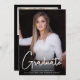 La invitación a la fiesta de graduación fotográfica White 2 con guión asual incluye 2 fotos de la graduada 2023. El frente presenta tipografía de escritura blanca y moderna con el nombre del graduado, el año y la escuela. En la parte de atrás hay una segunda foto del graduado con todos los detalles de la fiesta de graduación. Una invitación moderna y clásica, con las magníficas fotos del graduado como estrella.