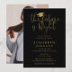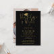 Esta elegante invitación a la fiesta de graduación de guiones negros y dorados se puede personalizar con tus detalles de celebración y fotos al revés. Diseñado por Thisisnotme©