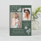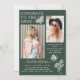 Las invitaciones a la fiesta de graduación de fotos de mariposa blanca verde moderno muestran el texto simple "Felicitaciones al Grado" acentuado con una flor y mariposas con dos de tus fotos favoritas y personalizado con detalles de la fiesta de graduación y nombres en la elegante tipografía de escritura blanca. Personalice editando el texto en los cuadros de texto proporcionados y agregando sus fotos favoritas. Diseñado por ©2023 Evco Studio www.zazzle.com/store/evcostudio