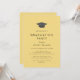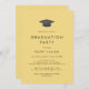 Esta invitación a la fiesta de graduación de la gorra amarilla de moda es perfecta para un fiesta moderno al aire libre. El diseño es sencillo, con una tipografía clásica de color amarillo dorado y negro con un gorra de graduación de acuarela de color negro y dorado.