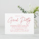 Celebre con estilo con estas invitaciones divertidas y modernas a la fiesta de graduación, presentando "Grad Fiesta" en un moderno guión rojo con sus detalles personalizados de graduación que se muestran a continuación. El diseño audaz y simple hace que estas graduaciones rojas sean perfectas para los graduados de secundaria y universitarios. La parte trasera muestra un juego de patrones geométricos punteados en blanco y rojo, añadiendo un toque único a tu celebración.