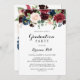 Esta invitación a la fiesta de graduación de caligrafía rústica y moderna de otoño es perfecta para una simple celebración. El diseño es de color burdeos, rojo, marino, azul y ondulante radiante y flores elegantes pintadas a mano, inspirando la belleza natural.