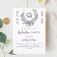 Fondo blanco. Una corona floral de flores de lavanda y de eucalipto acuático. Personalice y agregue un nombre y detalles.