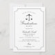 Una elegante invitación para graduarse con colores formales en blanco y negro y un símbolo de escuela de leyes. Los detalles del texto y la imagen se pueden personalizar.
