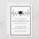 Esta invitación a graduarse en blanco y negro con temas relacionados con el latido del corazón presenta un diseño audaz y moderno con un elegante marco de doble línea alrededor de los bordes. La línea de latido del corazón de EKG en el centro se ve acentuada por un gorro de graduación que muestra "Clase de", con el año de graduación a continuación, añadiendo un toque significativo. Una mezcla de tipos de letra serif clásicos y una tipografía moderna y limpia crea un aspecto elegante y contemporáneo, perfecto para celebrar a un graduado en medicina o enfermería. El fondo en ambos lados es blanco, pero todos los colores (incluyendo la línea de latido, el texto y el marco) se pueden personalizar para que coincidan con los colores de la escuela o con los tonos favoritos del graduado. Disponible como una invitación impresa o un archivo digital descargable para correo electrónico o impresión local!