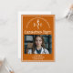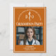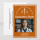 Este personalizado naranja de la invitación a una fiesta de graduación de la Facultad de Medicina de Osteopatía o a un médico de osteopatía presenta un símbolo osteopático médico caduceus y su foto universitaria para la clase de 2025. Personalizar con tu año de graduación en tipografía blanca para una gran invitación personalizada a un graduado universitario.