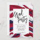 Elegante fiesta de graduación de la escuela secundaria con bandera Minimalista de Estados Unidos con diseño abstracto de acuarelas rojas, blancas y azules. Imprimida con cartón de calidad superior, esta invitación a la fiesta de graduación seguramente hará una impresión duradera. #gradpartyInvitation #minimalistInvitation #graduationparty Ideal para fiestas patrióticas, militares, de graduación de ROTC. Utilice nuestra herramienta de diseño para personalizar, personalización y para editar, reemplazar o eliminar elementos de diseño existentes - añadir nombre, texto, foto, imagen o logotipo. Personalice con sus detalles su tarjeta de invitación exclusiva para la fiesta.