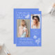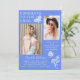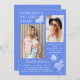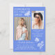 Modern Blue White Butterfly Photo Graduation Party Invitation incluye el sencillo texto "Felicitaciones al Grado" acentuado con una flor y mariposas con dos de tus fotos favoritas y personalizado con detalles de nombres y fiestas de graduación en elegante tipografía de escritura blanca. Personalice editando el texto en los cuadros de texto proporcionados y agregando sus fotos favoritas. Diseñado por ©2023 Evco Studio www.zazzle.com/store/evcostudio
