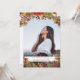 Una invitación para graduarse con fotos de una mujer madura posando a la luz del sol contra las montañas, y rodeada de flores en tonos tierra. Simplemente borra la foto y agrega la tuya propia. Personalice con usted las fechas. hora y ubicación en el reverso con información de rsvp.
