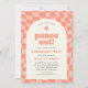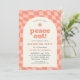 Una invitación a la fiesta de graduación inspirada en el diseño retro de los años 70. Esta invitación presenta un oscuro patrón de tablero de ajedrez retorcido naranja que crea un aspecto grooví - perfecto para una fiesta de graduación ruidosa! La palabra "paz fuera" está en un tipo de letra retro para completar el aspecto.