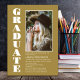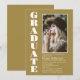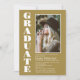 Una moderna invitación minimalista a una fiesta de graduación de fotos de personalizados blancos y dorados.