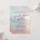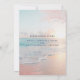 Moda rosa y turquesa azul océano azul océano playa puesta de sol con hojas de palma tropical dorada subió y un degradado de gradiente oscuro sobre fondo en una invitación a la fiesta de graduación temática de verano. Toda la redacción puede cambiarse para trabajar por cualquier edad de cumpleaños o celebración, y hay espacio en la parte trasera para ropa opcional, instrucciones o información de estacionamiento.