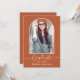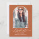 Marco fotográfico de arco moderno - guión de caligrafía de moda - Tarjeta de invitación de fiesta de graduación de fotos - fondo de terracota