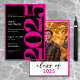 Moderna y divertida, esta invitación a la fiesta de graduación combina el blanco y el negro clásico con acentos de rosa intenso. Su diseño mínimo es un diseño simple y divertido para celebrar el gran día del graduado. La parte trasera muestra la foto favorita de tu graduado. Creado por Simply Farmhouse Press.