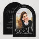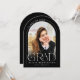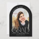 Esta simple tarjeta de graduación minimalista, en blanco y negro, sirve como invitación de graduación y como invitación para una fiesta de graduación, y presenta una foto en un marco de arco y una elegante tipografía moderna.