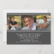 Anuncie su graduado de secundaria o universitario con estilo con una tarjeta de graduación de tres fotos con detalles de franjas y la redacción moderna de sans serif invitación. Colores de diseño gris/blanco y negro de carbón vegetal. Personalizar para añadir tres fotos y tu invitación de graduación y detalles de la invitación de fiesta.