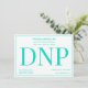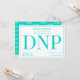 Invitación a una fiesta de graduación del DNP en blanco y verde azulado. Esta invitación también tiene un patrón de la palabra DNP en la parte trasera. Diseño vacacional de la fiesta de graduación del DNP blanco Verde azulado de tipografía | ©Melissa Patton - Diseñador