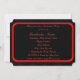 Una tarjeta de graduación roja y negra invitando a los seres queridos a honrar a un maravilloso graduado en su día especial de celebración. La información para la invitación a la fiesta de graduación se escribe con letras rojas.