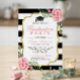Invitación Partido de Graduación Floral Gold Black White Stri