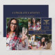 Esta moderna invitación a una fiesta de graduación de enfermería puede ser personalizada con sus 3 fotos especiales de graduación y detalles de celebración en tipografía de oro sobre un fondo azul marino. Diseñado por Thisisnotme©