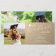 Partido de Graduación Fotográfica Elegante Invitaciones a Guión Moderno presenta dos de tus fotos favoritas con el texto blanco "Graduado" en una elegante tipografía de escritura caligráfica sobre un fondo metálico de oro. Añada a continuación la información de su invitación para graduarse. Personalice editando el texto en los cuadros de texto proporcionados. Enviar como descarga digital instantánea, como invitación física por correo o ambos. Creado por ©Evco Studio www.zazzle.com/store/evcostudio