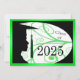 Una silueta de un hombre joven en su gorra y vestido. Diseño floral de fondo. La parte trasera tiene un fondo verde con letras negras para las invitaciones a la fiesta de graduación.
