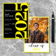 Moderna y divertida, esta invitación a la fiesta de graduación combina blanco y negro clásico con acentos de amarillo brillante. Su diseño mínimo es un diseño simple y divertido para celebrar el gran día del graduado. La parte trasera muestra la foto favorita de tu graduado. Creado por Simply Farmhouse Press.