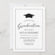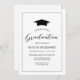 Esta sencilla y clásica invitación a la fiesta de graduación incluye una funda de mortero cubierta de negro sobre un fondo blanco. La palabra "Graduación" aparece en escritura a mano en negro. Personalizar el texto sans serif con el nombre del graduado y los detalles del fiesta dentro de un delgado borde de marcos negros.
