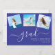 Invite a sus amigos y familiares a su fiesta de graduación con esta moderna tarjeta de invitación para la fiesta de graduación de Collage de fotos 4. Esta plantilla de invitación de estilo minimalista simple presenta una tipografía de escritura blanca elegante con un fondo azul moderno y es perfecta para graduados de secundaria o universitarios. La tarjeta de doble cara incluye espacio para cuatro de tus fotos favoritas de graduación, lo que lo convierte en la manera perfecta de mostrar tus logros e invitar a tus seres queridos a celebrar contigo. ¡Enhorabuena!