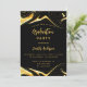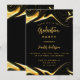 Una tarjeta de invitación de estilo moderno para una fiesta de graduación tanto para él como para ella. Un fondo negro decorado con falsos remolinos de oro. Personalice y agregue un nombre y detalles del fiesta. El texto Graduación y el nombre están escritos con escritura de estilo con letras a mano moderna. Texto dorado.