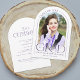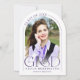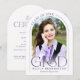 Esta simple tarjeta de graduación minimalista, morada y blanca, sirve como invitación de graduación y como invitación para una fiesta de graduación, y cuenta con una foto, un armazón y una elegante tipografía moderna.