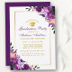 Tarjeta de invitación para fiesta de graduación de floral y oro ultra violeta de color de agua - Purple Back