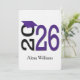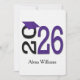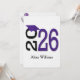 Año de graduación 2025 en texto morado y negro sobre fondo blanco. El nombre y la información del fiesta de la parte trasera son modificables.