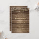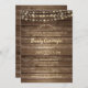 Una rústica invitación a una fiesta de graduación de campo con fondo de madera templada y luces de cuerda de brillo amarillo. Todo el texto es editable (borrar cualquier texto de ejemplo para dejar en blanco) y el estilo, tamaño, color y ubicación del tipo de letra se puede cambiar para satisfacer sus necesidades haciendo clic en la pestaña "hacer clic en el personalizar más adelante". La parte trasera de la invitación tiene el mismo fondo de madera y ofrece un lugar para poner información adicional. Póngase en contacto con el diseñador si desea realizar alguna personalización o desea que los elementos de coordinación completen su conjunto de fiestas de graduación.