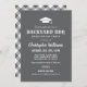 La invitación a la fiesta "Backyard BBQ" incluye un motivo de cierre de graduación, un elegante texto personalizado con fuentes rústicas y modernas, un desplazamiento y elementos de diseño de patrones de manto y texto blanco. Se puede personalizar el color de fondo gris. Perfecto para una fiesta de graduación al aire libre.