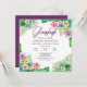 Este boho marco tropical de hojas verdes esmeraldas e hibiscos exóticos rosa, morado y amarillo es perfecto para las celebraciones de graduación de verano. Presenta la palabra "Graduado" en un texto de script no editable en color morado y negro sobre fondo blanco.