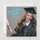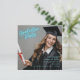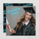 Divertida, moderna y animada invitación del Graduation Party con una brillante letras turquesa de neón. ¡Actualiza una foto de un graduado y personaliza el nombre del graduado, año de clase, fecha, hora y ubicación! Felicitación graduación!