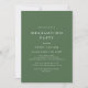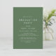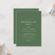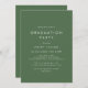 Esta invitación a la fiesta de graduación verde de moda es perfecta para un fiesta moderno al aire libre. El diseño es sencillo y presenta una tipografía blanca y verde clásica de cazadores de bosques oscuros, con un ambiente rústico de boho. Personalizable de cualquier color.