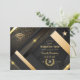 Moderna y sofisticada invitación virtual en línea para una fiesta de graduación con un personalizable de temas en negro y oro según sus especificaciones.