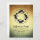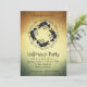 Razones góticas en formación de círculo con la cita de Edgar Allan Poe "nunca más". Una iluminación de fondo de colores vivos con una tipografía decorativa divertida. La declaración al final de la invitación dice: "ven si te atreves".