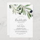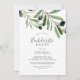 Esta moderna invitación a la soltera de la rama de olivo es perfecta para una noche de boho. El diseño rústico y elegante presenta una sencilla acuarela de hojas botánicas verdes y aceitunas negras en una pequeña rama de ambiente mediterráneo clásico.